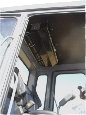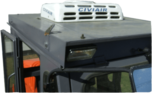 Sistema compuesto por un compresor, accionado por la correa del vehículo, una unidad condensadora sobre el techo de la cabina compuesta por: filtro deshidratador, visor de liquido, tubo recibidor, condensador tubo de cobre y aleta de aluminio, forzadores, unidad evaporadora en la parte interior / trasera compuesta por: evaporador de tubo de cobre y aleta de aluminio, válvula de expansión regulable, 2 turbinas , tablero de comando