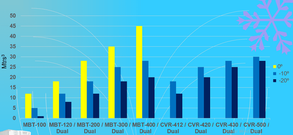 Propulsado mecánicamente, eléctricamente (/380 V) o por ambos simultáneamente. Equipo diseñado para cajas térmicas de 45 m3, con una aislación de 2 pulgadas de poliuretano expandido rindiendo una temperatura de -5ºC. Sistema compuesto por un compresor, accionado por la correa del vehículo, y otro eléctrico en el interior de la unidad condensadora, la cual se encuentra en el frente del vehículo (sobre cabina) y está compuesta por dos condensadores, doble filtro deshidratador, doble tubo recibidor, dos forzadores, visor de liquido. La unidad evaporadora se coloca en la parte interior/superior del compartimento de carga con doble válvula de expansión, tablero de comando digital en el interior del vehículo. Ideal para camiones tipo MB - 1315 ó similar que transportan sustancias frescas.